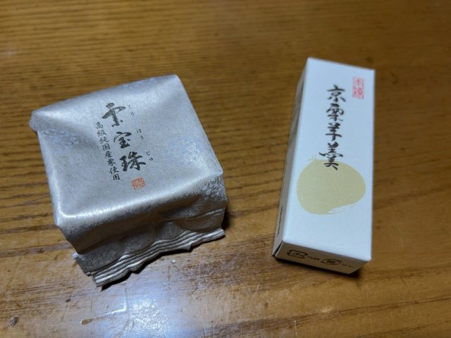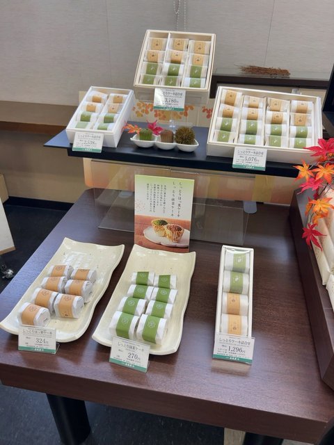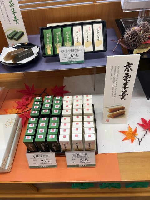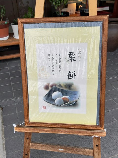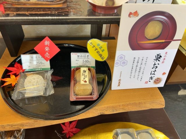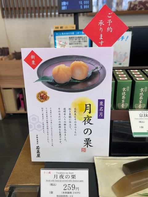 そんな場所に、油小路御池通り沿いに本店構えるある昭和2年創業の和菓子店『若菜屋』工場直営店があります。この日は法事用に秋らしいお菓子を求めてやってきました。さらに、個人的に昔よく実家でこちらの銘菓『栗阿彌(りつあみ)』を頂く機会があり、久々に食べてみたい、と。