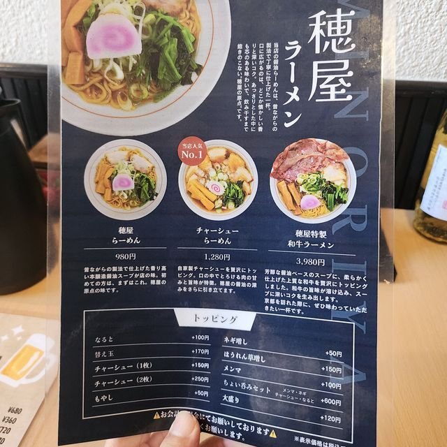 お店の名前は「ラーメン 穂屋」(みのりや)、2025念11月にオープンしたばかりのニューカマー。4人連れグループと入れ替わりで入店。