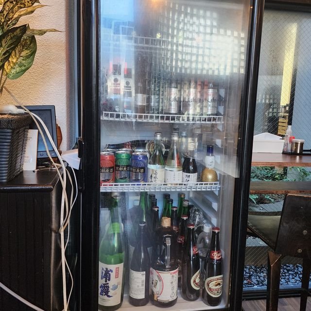 夜来ても面白そうだと思ったので、置いてある酒用冷蔵庫をパチリ。日本酒も300ml瓶を含め各種完備な模様。軽めのアテで軽く呑んで、その〆に食べたい一杯でした。