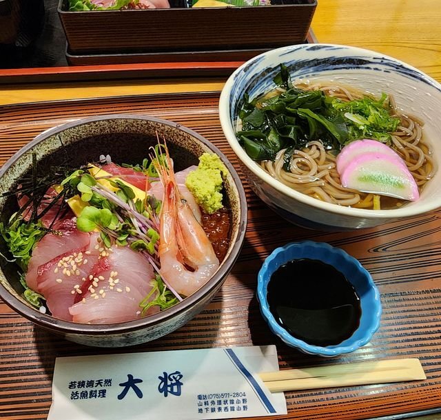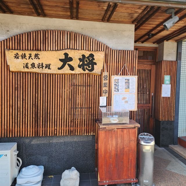 ランチは魚系が良いなあと意見一致。で、やってきたのがこちら。山科の地下鉄東西線小野駅1番出口からの横にある物件、「若狭天然活魚料理 大将」。以前、直ぐお向かいにある「焼肉たかもり」に来た時にお店前を通って、こりゃいい感じだなと覚えていたのだ。 店内に。