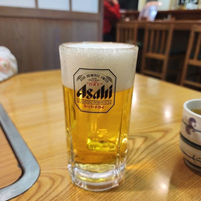 年季の入ったなかなか風情のある店内。ご覧のようなカウンター席のお向かいに掘り炬燵席が3卓という構造。30名まで入れる個室もあるようです。ご家族経営という感じで1965年創業!という想像以上に老舗でした。、カウンターの端っこに常連さん1名、ボックス席の端っこに赤ちゃんを含むご家族連れ(もしかして、お店の方かもですが)と言う状況。歩き出した赤ちゃんのおかげで、店内は柔和な雰囲気に包まれるのだ。