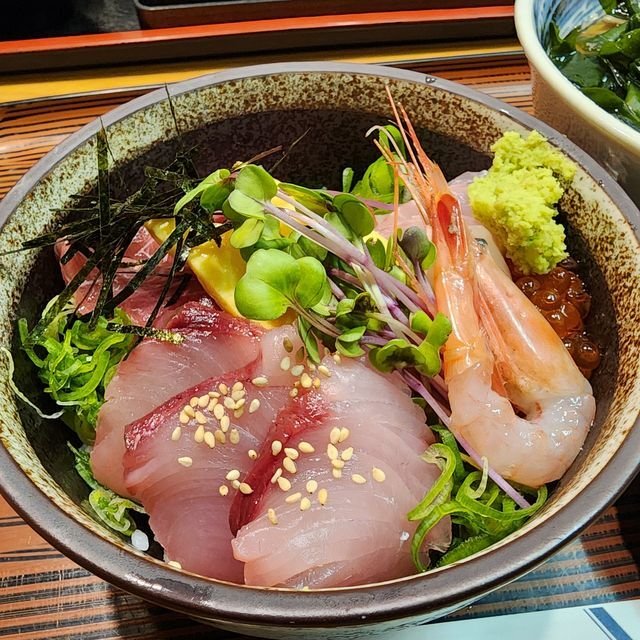 白身4貫に甘エビ、いくら、貝柱、鮪に玉子焼と言うような布陣。美味しい山葵で頂くと、旨さがぐっと引き立ちますな。良く食うおっさんには少々ご飯少な目なのですが、健康健全量。しかし、天然活魚料理を名乗るだけあって、こりゃちゃんとしておりますなあ。ニッコリ。