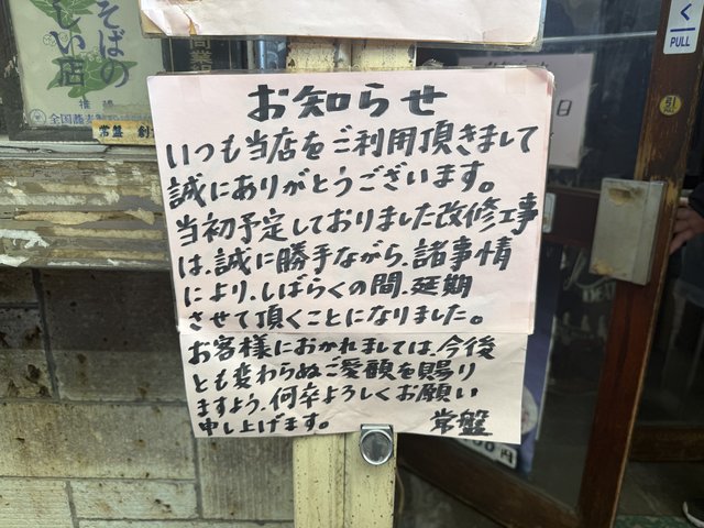 じつは2月下旬から改修工事に入り休業予定でしたが、しばらくの間、工事が延期となりました。歴史ある店舗だけに、今後の動向も気になるところです。